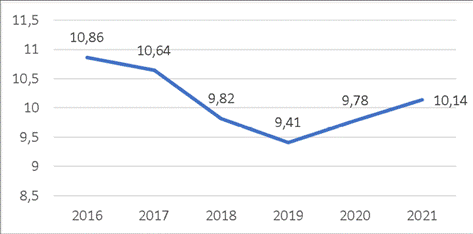 Figure 1. Poverty Rate in Indonesia 2016-2021 (%)