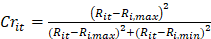 Hence, for each country i at sample period t, the indicator is obtained by transforming the nominal long-term interest rate Rit. The minimum and maximum values Ri,min and Ri,max correspond to the extrema of this variable for each country throughout data availability. The justification for this approach is taken from (Goodfriend, 1993) work, according to which the variation in long- term nominal rates provides a good approximation of inflationary fears.