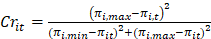 Therefore, (Al-mashat et al., 2018) propose a simple measure of the monetary policy credibility in the light of a long-term interest rate transformation, which compares the current rate with its highest and lowest historical levels over the selected period. It is formally presented as follows: