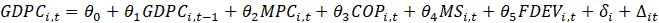The study aims to evaluate the effect of monetary policy credibility level, broad money supply, financial development, and commerce openness on the economic growth in the selected countries of COMESA and ECOWAS regions between 2015 and 2020. COMESA countries concern Burundi, Kenya, Rwanda, Egypt, Ethiopia, Malawi, Mauritius, Tanzania, Tunisia, Uganda, and Zambia. ECOWAS include Ghana, Nigeria, Senegal, Benin, Burkina Faso, Liberia, Mali, Sierra Leone, Gambia, Ivory Coast, and Togo. A level of MPC allowing us to quantify by year and by country the MPC has been put up in the first model. The dynamic panel data model to be estimated is presented as follows: