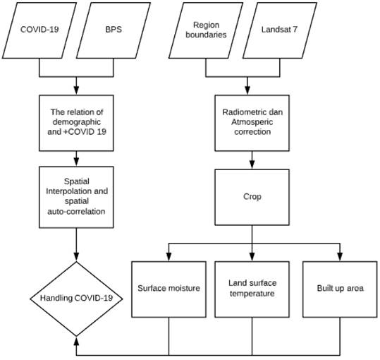 Focusing on the temperature and other weather parameters is possible to obtain from the satellite data (Shah et al., 2013). Several studies have been carried out using environmental parameters throughout this COVID-19 occurrence. These studies consider various parameters, such as weather and climate conditions (Bariotakis et al., 2020; Qi et al., 2020; Tosepu et al., 2020), the demographics factors (Ahmadi et al., 2020; Coccia, 2020), and the combination of these two parameters combined with geographic location (Luo et al., 2020). However, these studies do not directly explain its occurrence that threatens human life (Dennis et al., 2005).