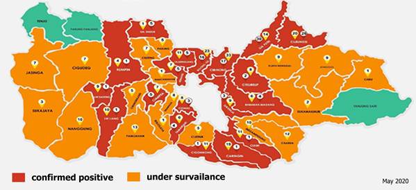 Figure 2. Map for spreading of Covid-19 (Sources: PPI ID Kabupaten Bogor, 2020).