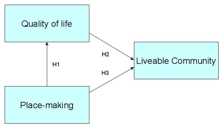 H4. Quality of life mediates in the relationship between Place-making and Liveable communities.