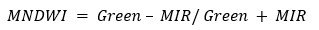 MNDWI differentiate water from a background predominantly composed of built-up land areas. According to Xu (2007), MNDWI outperformed the Normalised Difference Water Index in terms of outcomes. Equation 3 (McFeeters,1996), describes the modified NDWI (MNDWI), where MIR represents a middle infrared band, for instance, TM band 5. Due to expanding water features and declining built-up land values, the contrast characteristic between water and the built-up area shown by the MNDWI will be relatively substantial in comparison to the study achievable with the NDWI (Hu, 2007).