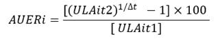 The first statistical index to determine the average annual urban expansion rate is called the Average Annual Urban Expansion Rate (AUER). According to (Acheampong et al., 2016), this indicator calculates the average annual growth rate of built-up land in the case study across the time period. The Annual Urban Expansion Rate is calculated using Equation 4, where AUERi is the Annual Urban Expansion Rate, ULAit2, and ULAit1, respectively, are the areas measured in i units at times t2 and t1, and t is the research period.