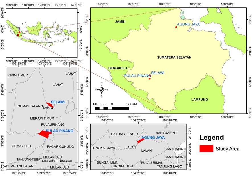 This research study will be conducted in three zones selected by researchers based on the strength of the influence and distribution of the construction of the Pantauan Bunting tradition. In one zone, the tradition is still strong, in the second it is fading away, and in the third it no longer exists. Agung City Village is included in the zone that is still practicing the tradition. Pulau Pinang Village is included in the transition zone where the tradition is rarely practiced. Selawi Village is included in the zone where the Pantauan tradition is barely practiced anymore. The location of research is presented in Figure 2.
