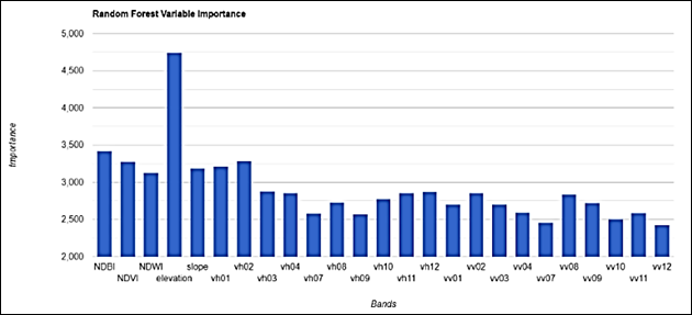 Figure 11.Random Forest Variable Importance of Paddy Field Classification In 2021.