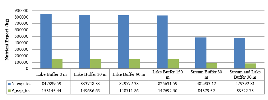 2.1. The nutrient export magnitude and the effect for each simulated lake and stream buffer zone width