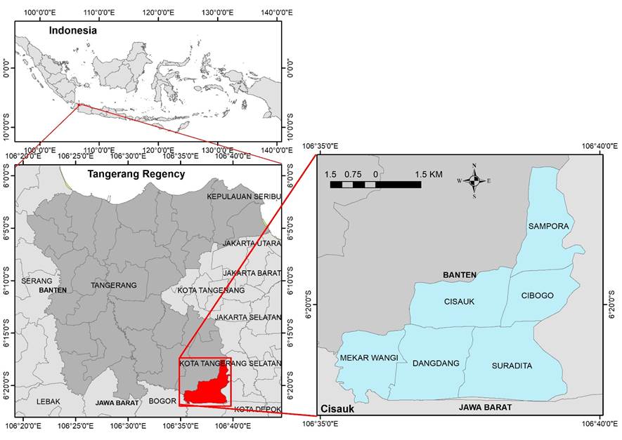 This area is peri-urban with high accessibility, as it is equipped with toll roads, railways, and regional road networks. In Tangerang Regency Regional Regulation Number 13 of 2011 concerning the Tangerang Regency Regional Spatial Plan, land use in Cisauk District, Tangerang Regency is included in the land use group with medium-density and high-density settlements. In addition to functioning as a settlement, Cisauk District is a place for educational activities, trade, and services that affect the surrounding area's growth.
