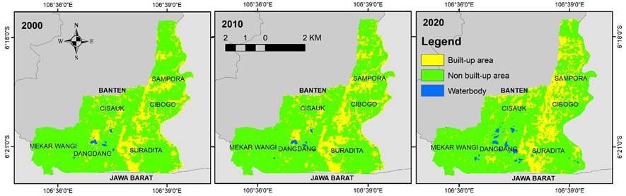 Figure 3. Land Cover Map of Cisauk District Area in 2000, 2010, and 2020 .