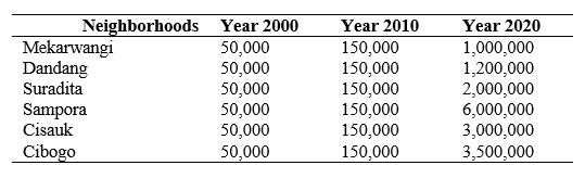 In 2000, Cisauk District was mostly agricultural land and plantations, with very few residential or commercial buildings (Figure 3). In 2010, a difference began to be seen in Cisauk District, and rapid development dominated this area with large-scale evictions taking place in Sampora Village. These changes began the first phase of the development of Cisauk District, which had previously been mostly undeveloped, into built-up areas. In 2010, officials realised that only a few of its areas had experienced development.