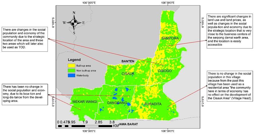Sampora Village, Cibogo Village, and Cisauk Village have all experienced social and economic impacts caused by developing new areas in the Cisauk District. Areas in these three villages experienced land use changing from agriculture to trade and services. This was caused by the area's economic development, which led to the development of housing, offices, and other commercial structures. A shift occurred from agricultural to non-agricultural land use.