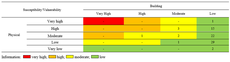 Table 7. Analysis of the physical susceptibility of the area and the vulnerability of the building.