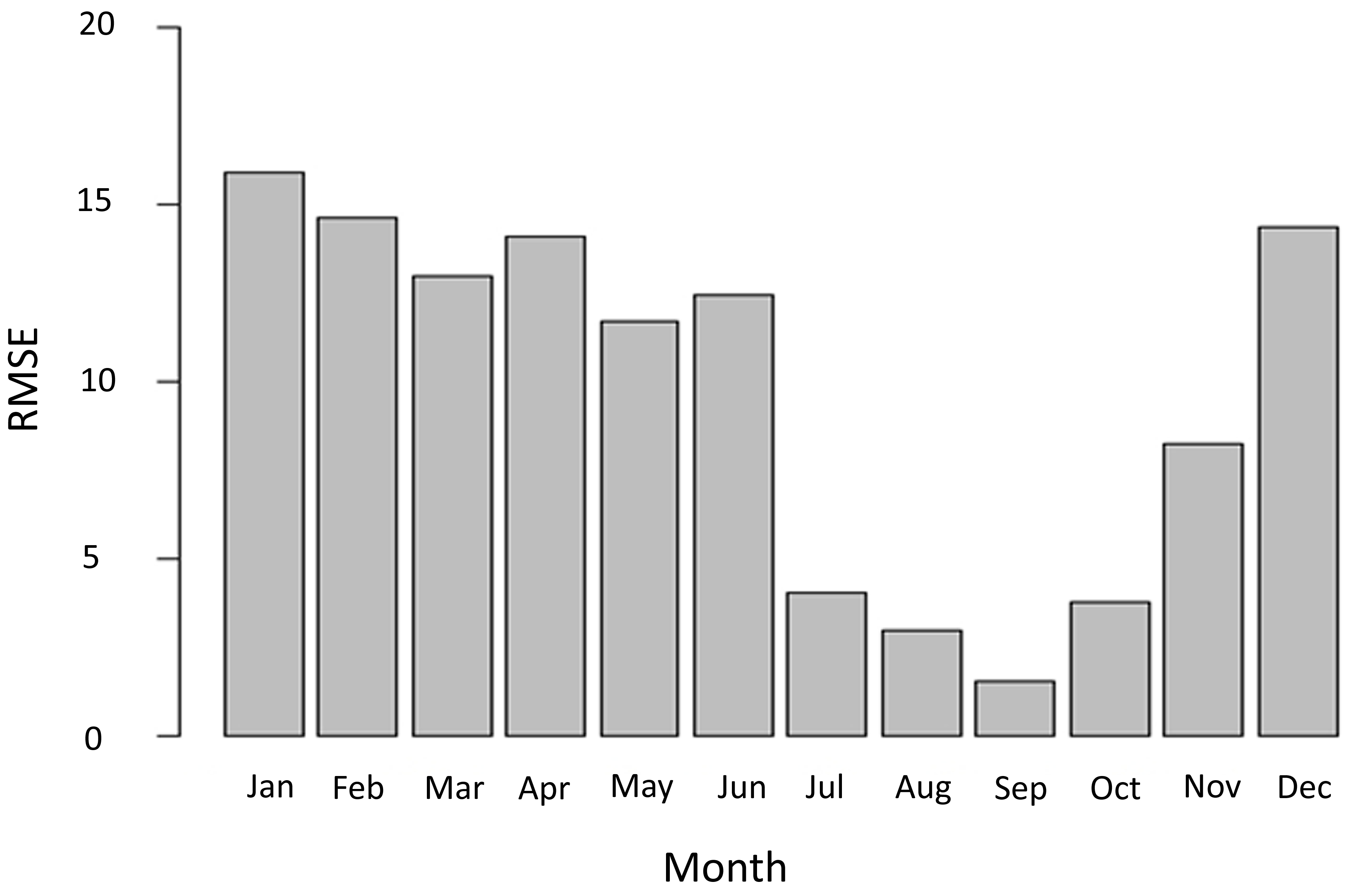 Figure 5. Collected daily RMSE in a month between TRMM rainfall estimates.