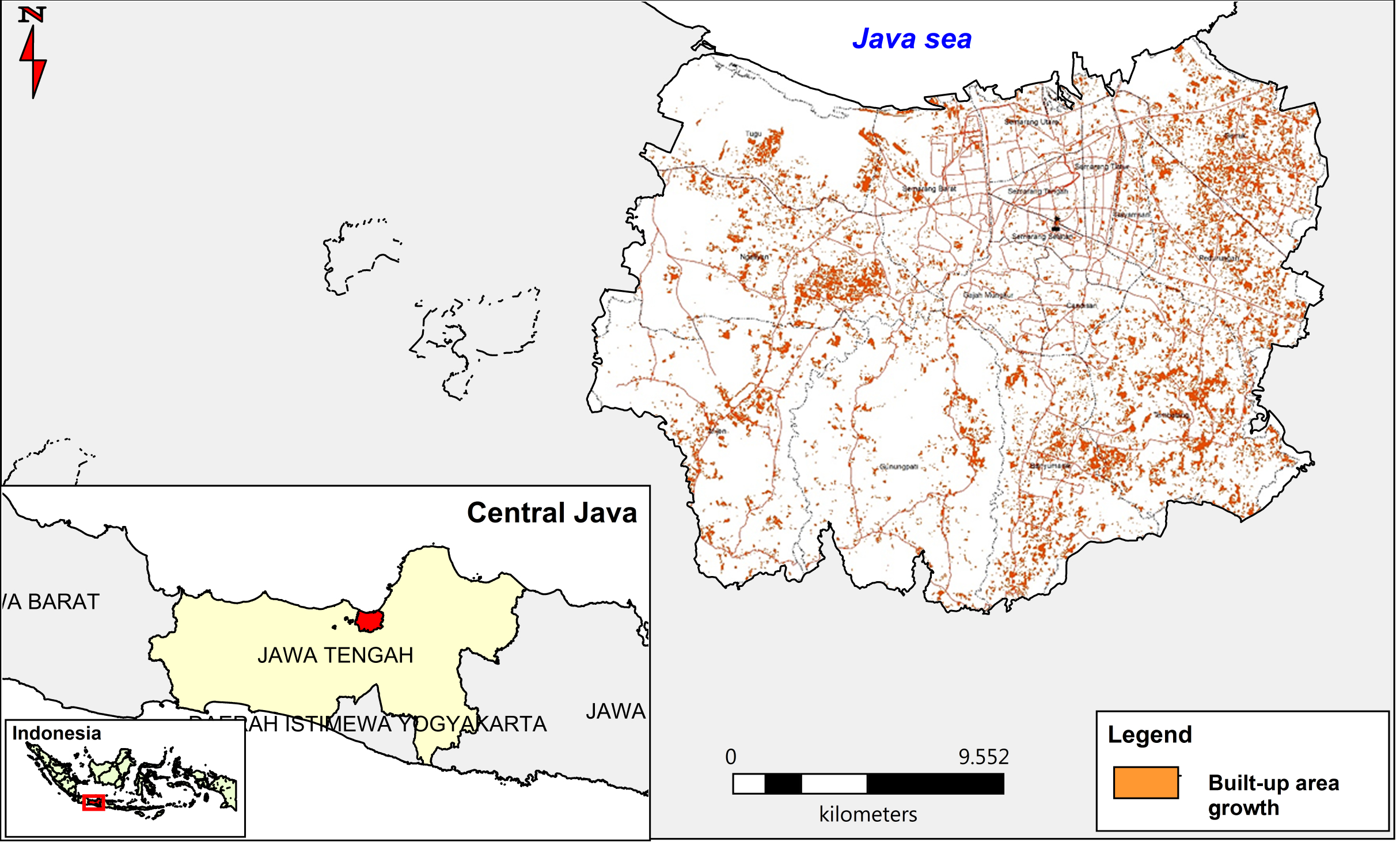Handayani, W., Rudiarto, I. (2014). Dynamics of Urban Growth in Semarang Metropolitan – Central Java: An Examination Based on Built-Up Area and Population Change. Journal of Geography and Geology 6(4): 80–87.