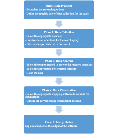 In this study, the standard workflow for science mapping by Zupic and Čater (2015) was adapted as presented in Figure 1. In the following section, the stages in Phase 1-4 are presented sequentially, whereas research findings are addressed in the results section. Interpretation and discussion of the findings are subsequently delivered in the final section.
