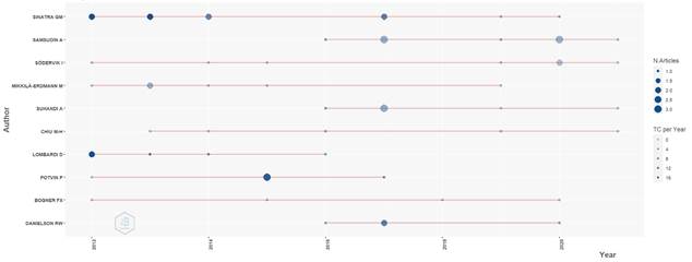 Performance analysis (identification of the most productive authors including their scientific publication over time and the most productive countries) |